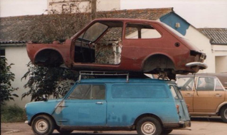 There was a huge crash and as we both looked round someone had reversed at high speed into Bruce's dead mini! Problem solved. Bruce's mini (cost £50) would now be worth £300 and someone else had been the cause of its demise. Every cloud (prank) has a silver lining!